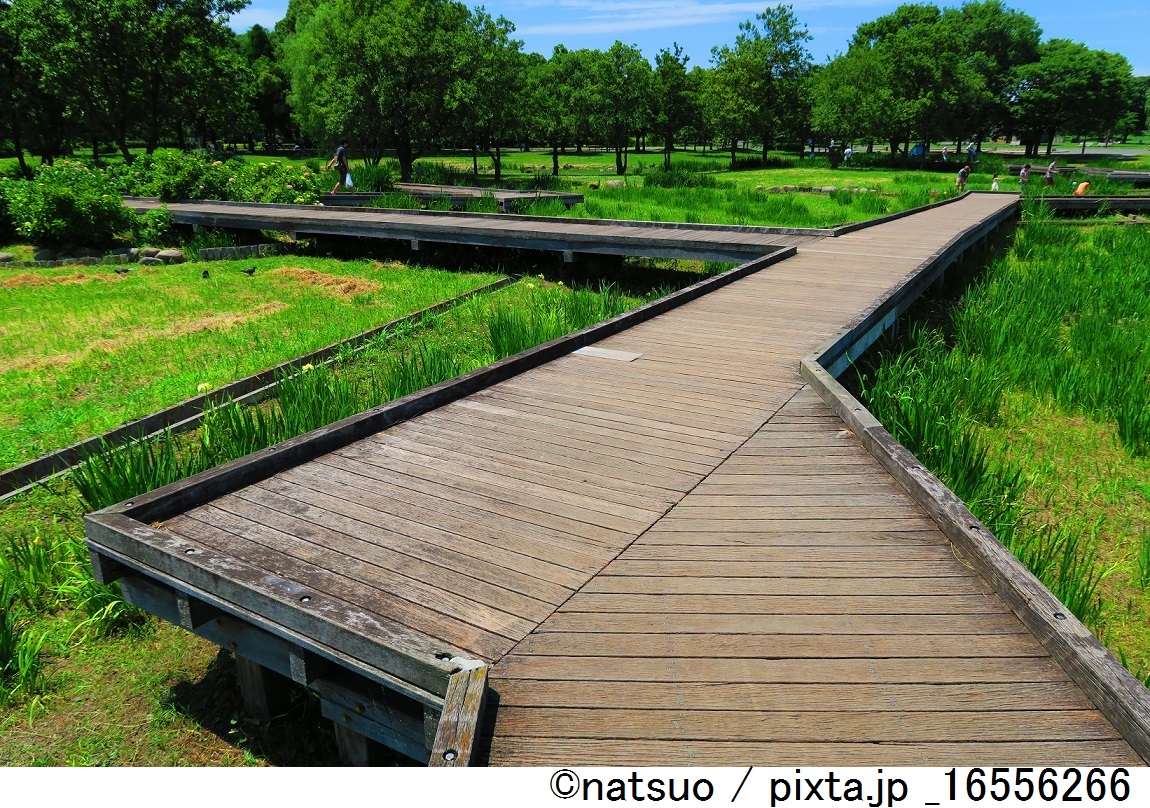 同じく舎人公園の池にかかる遊歩道。