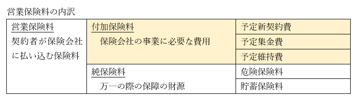 一方「付加保険料」は、「予定新契約費」「予定集金費」「予定維持費」の3つに分けられます。