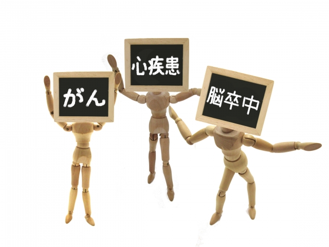 ざっくり言うと、「がん(悪性新生物)」「急性心筋梗塞」「脳卒中」のいずれかに罹患し、特定の状態になった場合に、一時金として「三大疾病給付金」が支払われ、治療費に充てることができるという保険です。三大疾病は日本人の死因の約4割を占めることや、罹患すれば入院が長引いたり、継続治療が必要となる場合も多く、高額の医療費がかかること、生活への支障などに備えることを目的としている保険です。