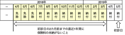 ・初診日の前日において、初診日がある2カ月前までの直近1年間に未納期間がないこと