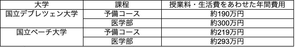 では、ハンガリー国立大学医学部への進学は、いくらかかるのでしょうか。