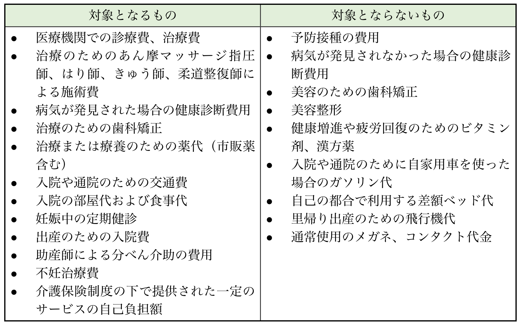 医療費控除の対象となる医療費とは、「治療」が目的のものであり、「予防」や必要不可欠でないものは対象とはなりません。