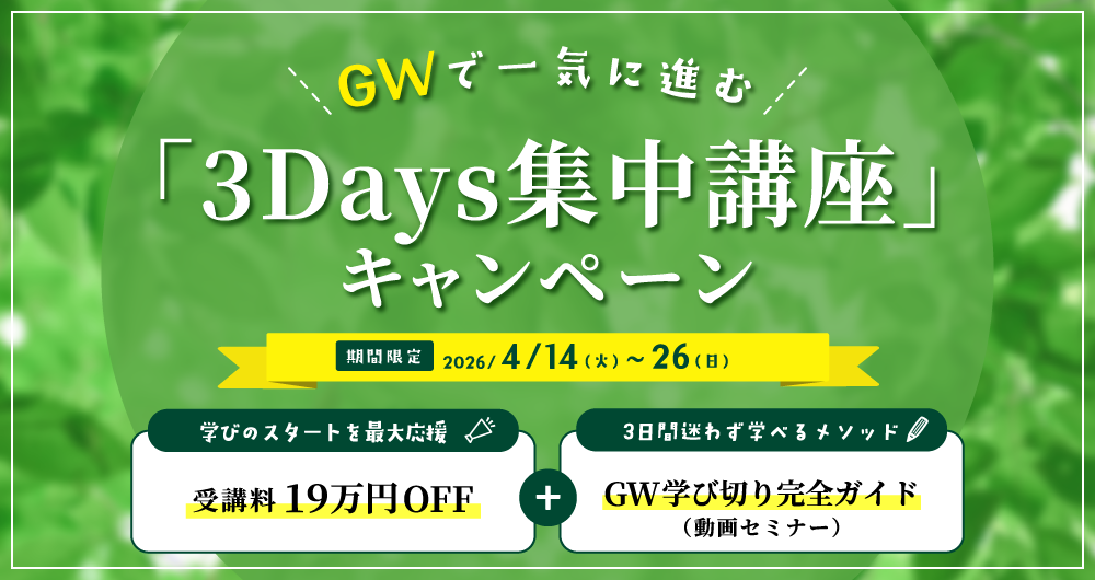 「3Days集中講座」とは、ファイナンシャルアカデミーの「株式投資スクール」を3日間という超短期間で学びきる、GW特別集中プログラム。