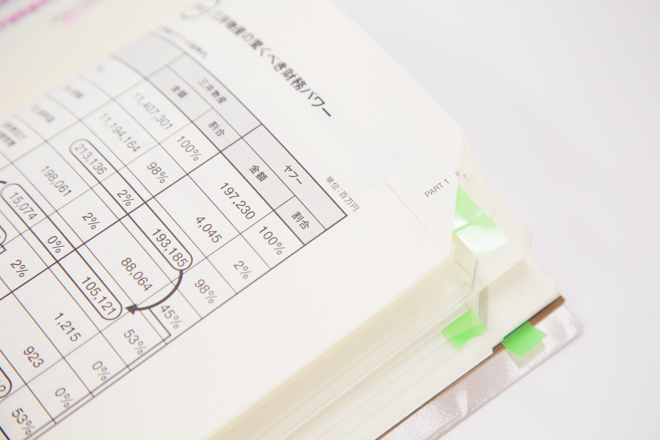 会計関連の本は、書き込みや付箋も多く、社員の熱が感じられます。