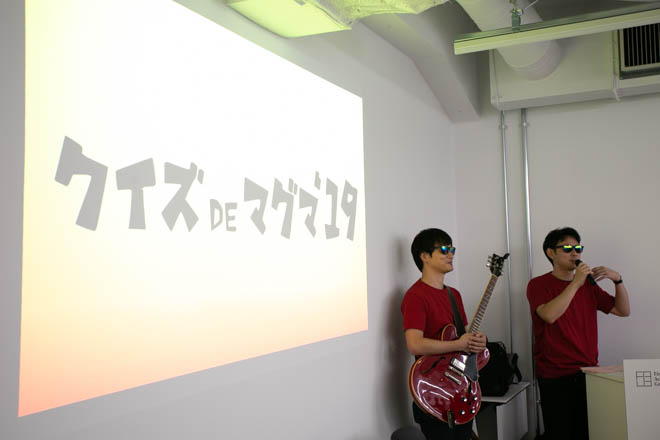 しばらくすると、「ROCK in Financial Academy––Summer Festival 2019」の「ROCK」にちなみ、ギターとサングラス姿で進行役のスタッフが登場。新しく入社したスタッフに関するオリジナルクイズで、会場を盛り上げます!