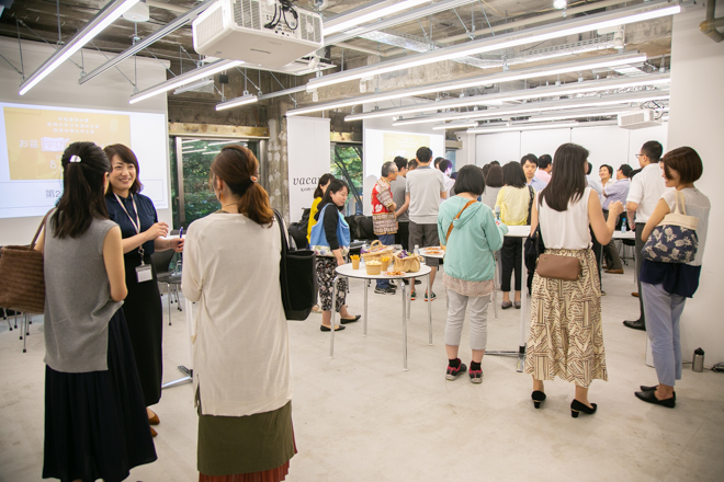 第二部は、飲み物とお菓子を片手に、みなさんが自由に交流する時間でした!「投資」という共通項があるため、会話の輪がいくつもできあがりました。