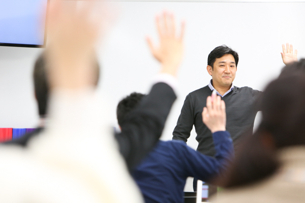 そして、「インプットの最終目的は、自分の中に”ものさし”をつくること」という言葉。「 ”ものさし”ができると、世の中の変化に敏感に反応できる自分になれる」とのこと。渋谷の言葉に、社員の目がキラキラと輝いていました。^^