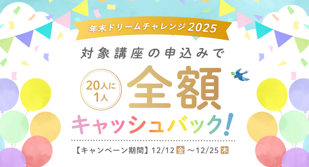 ✨ 20人に1人、受講料を“全額キャッシュバック”!