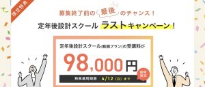 今だけ!定年後設計スクールが98,000円で受講できる!
