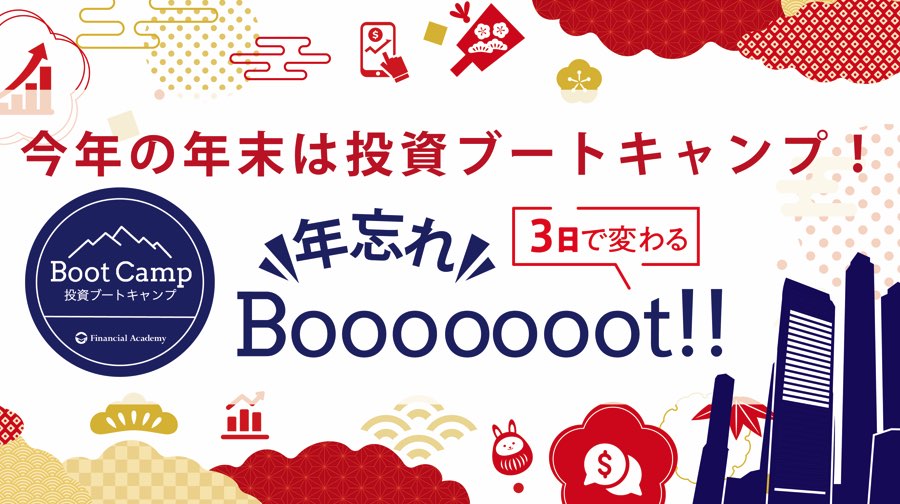 でも実は、もっと効果的に、そして実践的に、新しい年に向けて資産を呼び込む準備ができる方法があります。それがファイナンシャルアカデミーの年末投資ブートキャンプ『年忘れBooooooot!!』です。