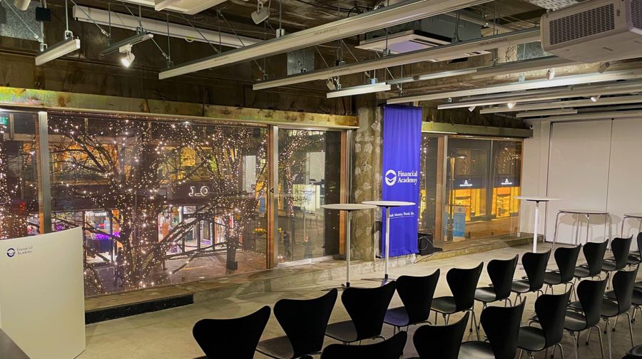 ファイナンシャルアカデミー丸の内本校は、この丸の内仲通りに面した2階にあります。そのため、教室の大きな窓からは、輝くイルミネーションを間近に見ることができます。まさにこれ以上の特等席はない、と言えるほどの圧巻の光景です。煌めくイルミネーションを見ながら、お金の知識を磨くなんて素敵ですよね。