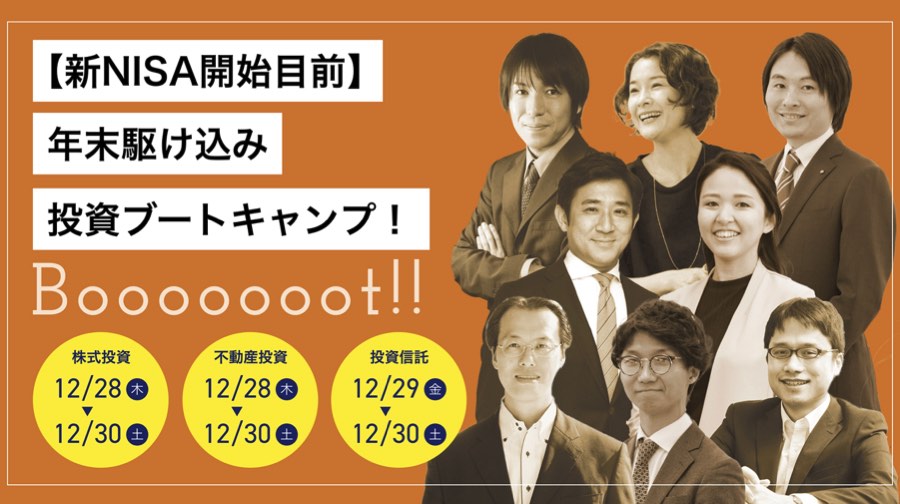 いよいよ新NISAもスタート目前。年末のお休みを有効活用して、短期間で各スクールのすべてのカリキュラムを一気に学べる「年末駆け込み 投資ブートキャンプ」で、新たな年に向かって加速していきましょう!