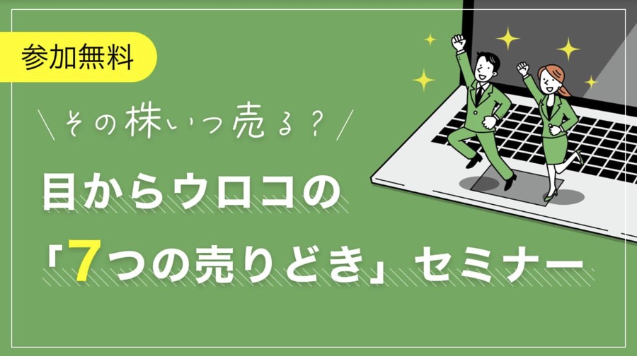 こうしたことから、一人でも多くの皆さんに、銘柄選びの重要性はもちろん「売りどき」について学んでもらいたいと企画したのが、5月21日(火)にZoomで開催する『その株いつ売る? 目からウロコの「7つの売りどき」セミナー』です。