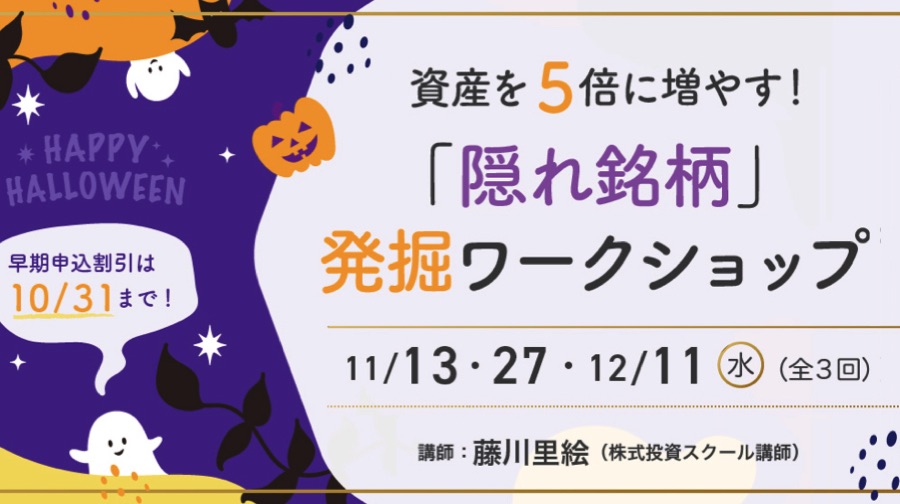 毎回、人気のために満席となっているこのワークショップ。今回もすでに多くの参加者がエントリーしていますので、気になる人は早めの申込みをおすすめします。このワークショップで「隠れ銘柄」を選び出すテクニックを身につければ、来年の春には利益がたっぷりと収穫できるに違いありません。