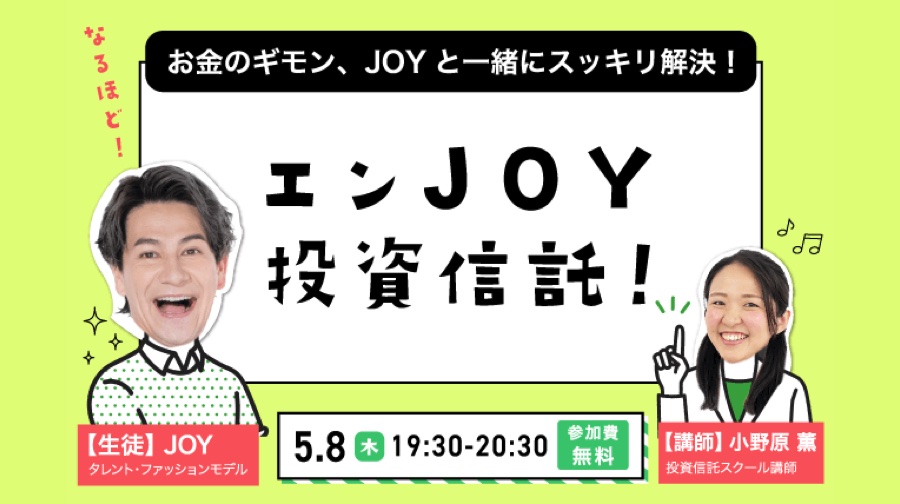 その名も「エンJOY投資信託!お金のギモン、JOYと一緒にスッキリ解決!」。モデル・タレントとして活躍するJOYさんをゲストに迎え、投資信託に関する疑問や不安を一気に解消しようというイベントです。