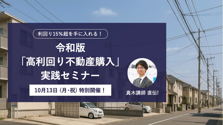 今回、そんな真木講師が、高利回り物件を手に入れるために実践しているメソッドを余すことなく公開する特別セミナーを開催します。