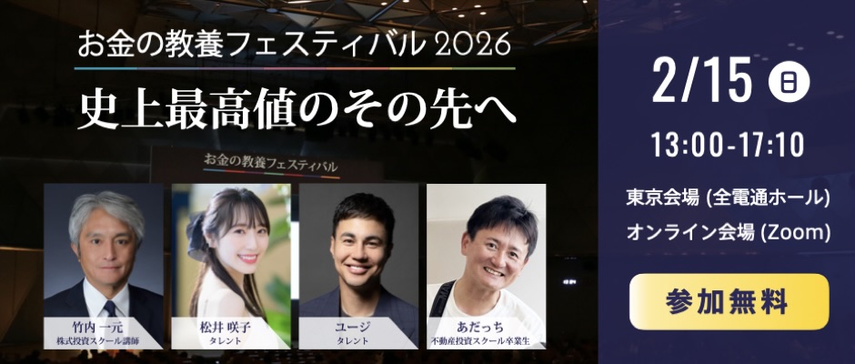 1年後に「今年もなにもできずに終わってしまった」と感じるのではなく、ぜひ「2026年は自分史上最高の状態に変われた!」と感じられるようになってほしい。そんな想いを込めて、来週末2月15日(日)に開催するのが「お金の教養フェスティバル2026」です。