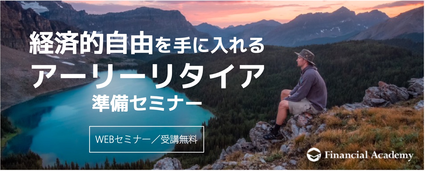 総合マネースクールであるファイナンシャルアカデミー(本社:東京都千代田区、代表:泉正人、以下当校)は、2021年7月3日(土)よりWEBセミナー『経済的自由を手に入れるアーリーリタイア準備セミナー』の無料提供を開始します。ライフスタイルが多様化する中、新たな生き方として注目を集める「アーリーリタイア」や「FIRE(経済的自立による早期リタイア)」を目指す上で欠かせない、不労所得を得続けるためのロードマップを伝えます。