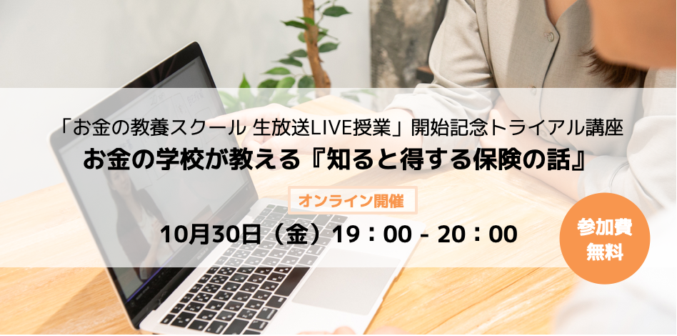 10月30日限定「お金の教養スクール 生放送LIVE授業」開始記念トライアル講座『知ると得する保険の話』