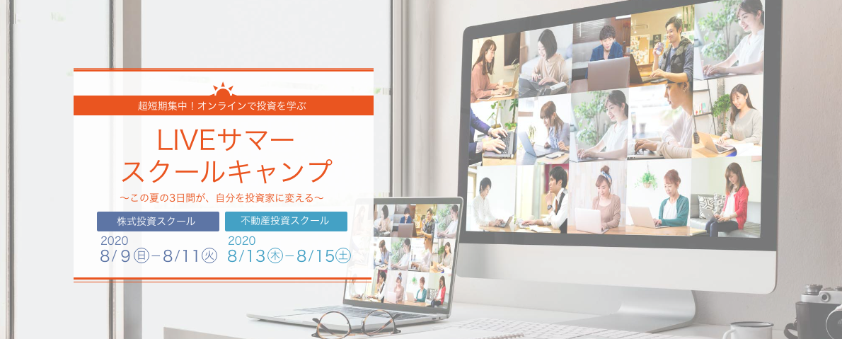 夏の短期集中『LIVEサマースクールキャンプ(株式投資/不動産投資)』を8/9から開催