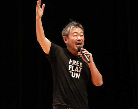 客席は満席による立ち見も出る熱気。現在の華やかな肩書からは想像がつかない、学生時代や銀行員時代の仰天エピソードから、講演は始まりました。ご自身の「人は変われる。人間関係はフラット。」という想いと、40〜50代の参加者に向けて一番大事なアクションを提示。シンプルなメッセージと、時折差し込まれる自虐話に、笑い声もしばしば。大ヒット映画「ボヘミアン・ラプソディー」の”エーオ”に習い、伊藤さんのコールと、参加者のレスポンスが響くという一幕も。伊藤さんと参加者が一体になったような講演でした。