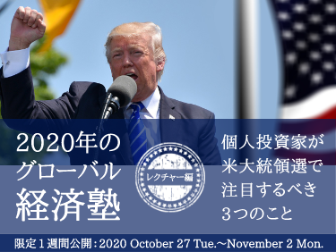 | セミナー名 | 2020年のグローバル経済塾<レクチャー編> 個人投資家が米大統領選で注目するべき3つのこと |