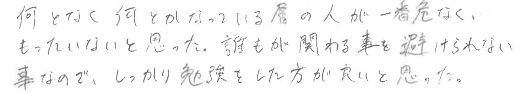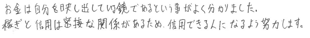 セミナー後の生徒さんからのメッセージを