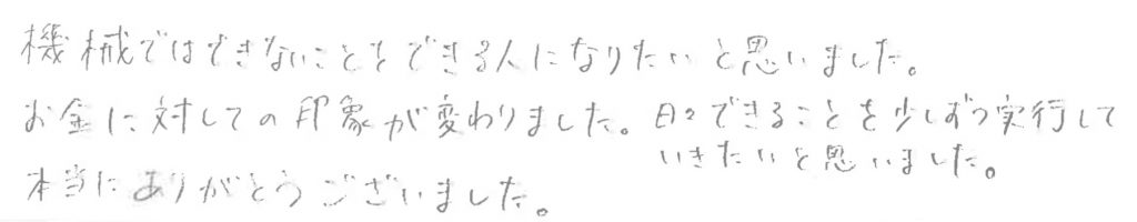 「機械ではできないことをできる人になりたい」というコメントに感激…!