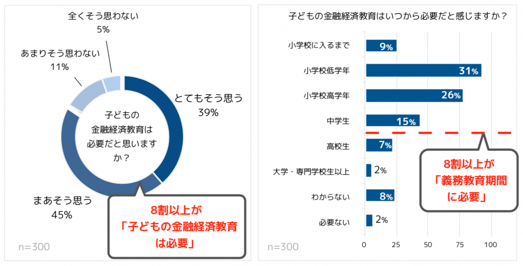 8割以上の親が、子どもの金融経済教育は「義務教育期間に必要」と回答
