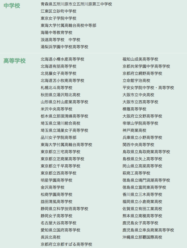 当協会のウェブサイト内にも掲載していますが、なんと、2016年4月にスタートしてから全国54の高校に申込みを頂いています。中学校7校からも申込みを頂いているんですよ。