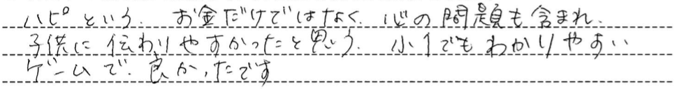 子どもたちが「幸せな気持ち」を大切にしてお金を使えるようになってほしい、