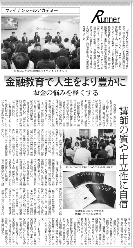金融経済新聞に取材記事が掲載