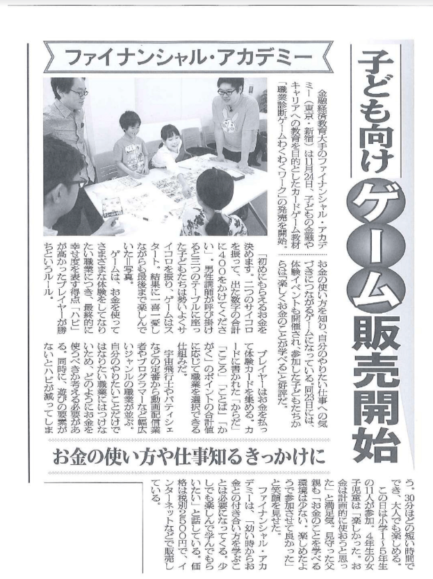 「キャッシュレス化時代の子どもたちへの金融経済教育」に関する企画に協力し、小学生向けにおこなっている金融教育カリキュラム『ハピプロ』、および講師のインタビューが紹介されました。