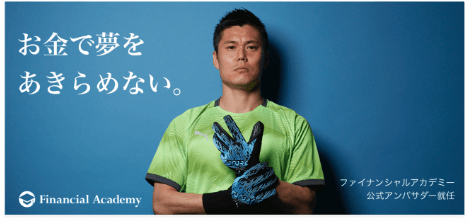プロサッカー選手であり、ファイナンシャルアカデミーの卒業生でもある川島永嗣氏が、公式アンバサダーに就任しました。自分の人生を守る「金融リテラシー」の必要性を伝えています。
