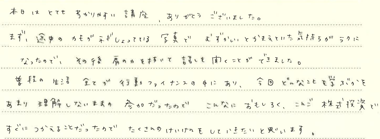 スクールの講師は全員、それぞれの分野で活躍している専門家、もしくは現役の投資家です。深い知識と数多くの経験を活かしたリアリティのある授業で受講生の理解を促します。動画授業、教室授業、Zoom授業ともに授業は常にアップデート。体系的なカリキュラムで学びつつも、講師から最新の情報や実体験を聞けるのも大きな魅力です。