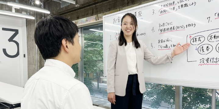 セミナーやスクールだけでなく、小学生の金融教育や高校の家庭科での授業、企業や官公庁での研修など、どこよりも幅広く「お金の授業」を行っています。