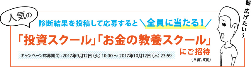 応募期間中に診断結果を「Twitter」で投稿すると器を広げるための講座を応募者全員にプレゼントします。